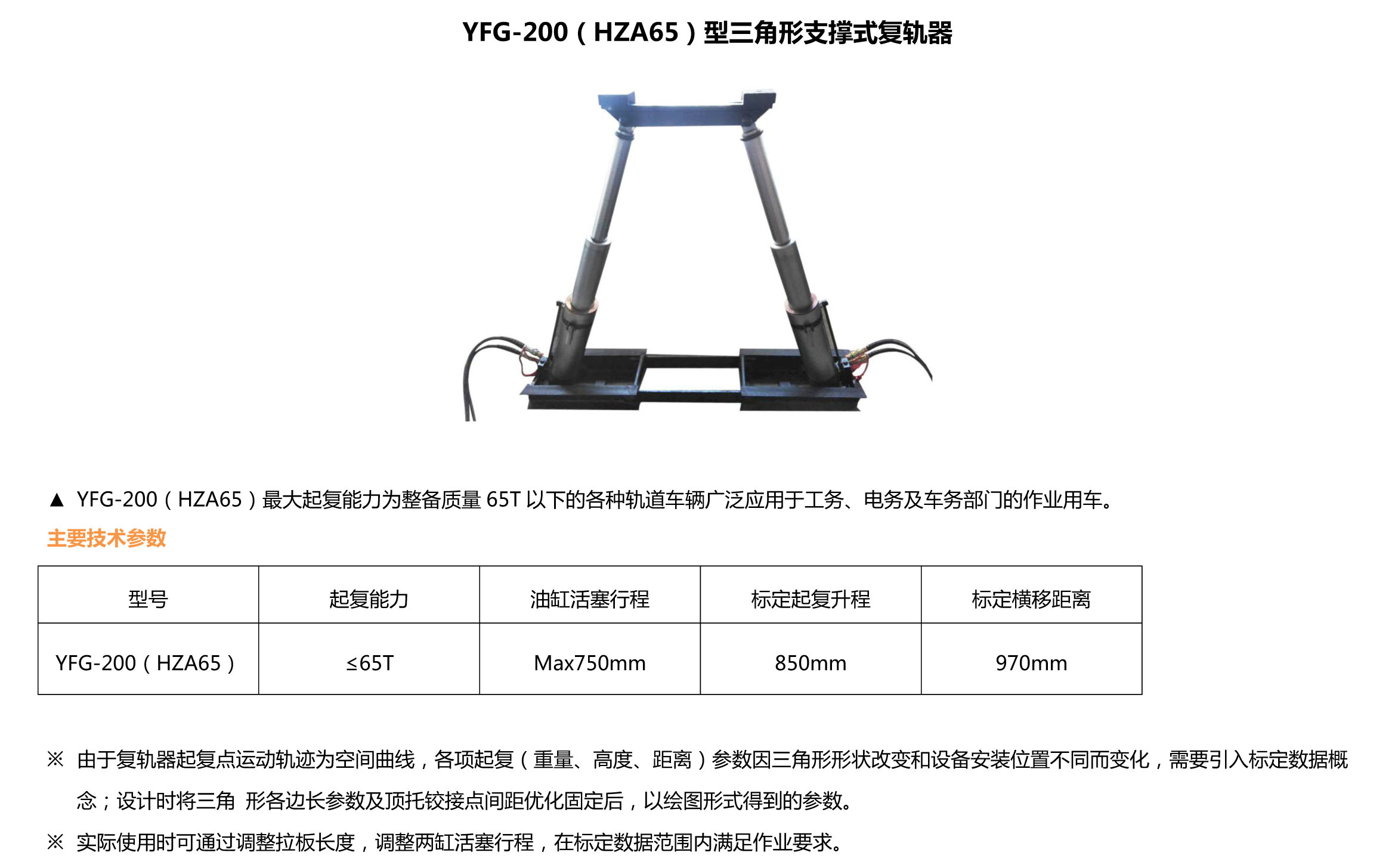 >> YFG-200(HZA65)三角形支撐式液壓複軌器